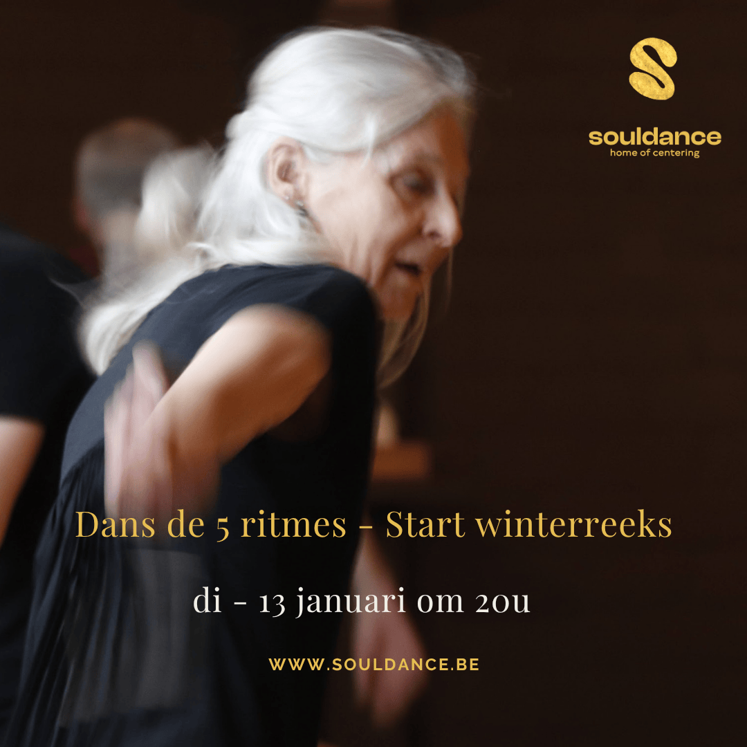 De 5 Ritmes van Gabrielle Roth vormen een dansreis waarin je doorheen verschillende energieën en stemmingen beweegt. Je begint in Flowing, het vloeiende ritme dat je verbindt met de aarde en je uitnodigt om te gronden en te ontvangen. Van daaruit stroom je vanzelf in Staccato, het ritme van helderheid en expressie, waar richting en grenzen zichtbaar worden. Wanneer spanning zich opbouwt, nodigt Chaos uit tot loslaten en overgave, een transformatie waarin oude patronen oplossen. Na die intensiteit opent zich Lyrical, licht en speels, een dans van vrijheid, creativiteit en vreugde. Uiteindelijk kom je terecht in Stillness, de stilte die alles integreert, waar je kan vertragen, verstillen en eenvoudig aanwezig zijn in het moment. Samen vormen ze een golf (wave) die je kan dansen en beleven, telkens opnieuw met nieuwe inzichten en ervaringen.
